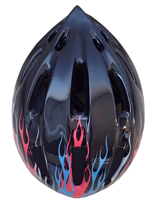 Cyklistická dětská helma pro kluky, 8 větracích otvorů, v přední části helmy je síťka proti hmyzu. V zadní části helmy je stahovací pásek okolo hlavy s upínacím šroubem pro dokonalé upnutí. Velikost S (48 – 52 cm). Hmotnost helmy je 200 g. Helma je vyrobená ze speciálního černého EPS (polystyrenu), který je pevnější a odolnější vůči nárazům než klasický bílý EPS, ze kterého jsou vyrobené levnější helmy.