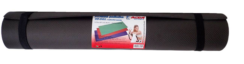 Gymnastická podložka na cvičení – ČERNÁ, je vyrobená z kvalitní polyetylenové pěnové hmoty (EVA) potažené protiskluzovým povrchem. To zaručuje komfortní cvičení při zdravotní nezávadnosti. Tato fitness podložka během cvičení neklouže po podlaze a také Vás dobře ochrání před odřením. Podložka má také izolační vlastnosti, díky kterým vás ochrání před prochladnutím. Je ideální nejen jako podložka na gymnastická cvičení, ale díky své kvalitě a protiskluzovému povrchu dobře poslouží i jako podložka na aerobik a další sportovní aktivity. Po cvičení podložku jednoduše sbalíte do přidaných popruhů. Popis podložky: je z lehkého a odolného materiálu – polyetylenová EVA pěnová hmota, snadno se čistí, má výborné izolační vlastnosti, chrání proti odření a studené podlaze, protiskluzový povrch, ideální pro aerobikový trénink a pro gymnastická cvičení na zemi, rozměry: 173 x 61 x 0,4 cm. Karimatka se vzorkem.