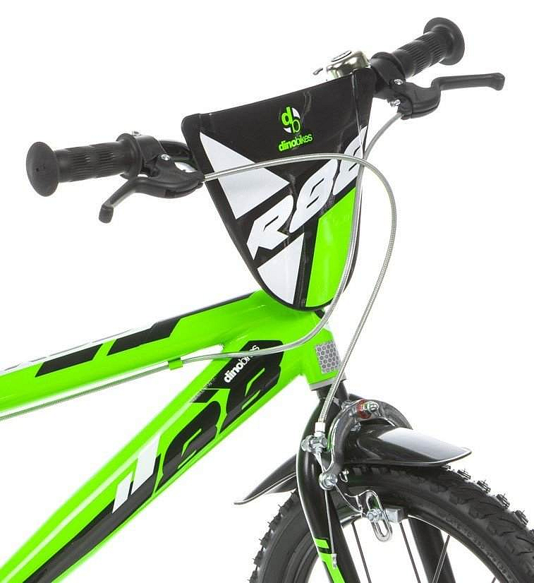 Dětské kolo Dino Bikes se vyznačuje propracovaným designem dávajícím kolu sportovní vzhled.