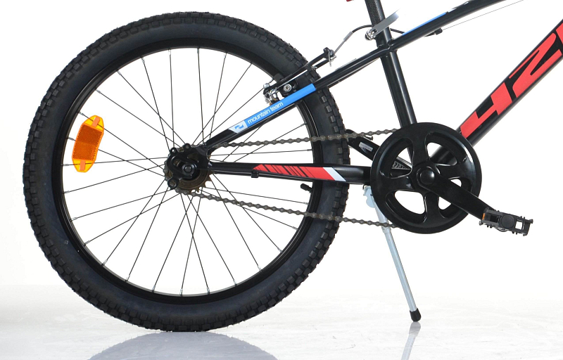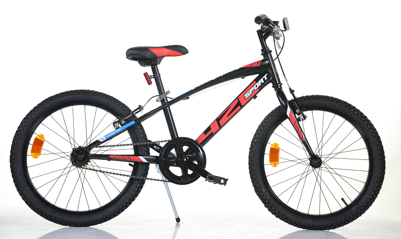Juniorské kolo Dino Bikes se vyznačuje propracovaným designem dávajícím kolu sportovní vzhled. Velkou výhodou všech našich kol italské výroby je, ŽE JSOU SEŘÍZENÁ PRO PROVOZ A NA 95% SMONTOVANÁ. Zbývá pouze nasadit řidítka a sedlo. Kolo má hliníkové ráfky 20" (palců) = 51 cm, dvouvrstvé nafukovací pláště s jemným vzorkem na silnici i do nenáročného terénu o rozměrech 20" x 2,125", volnoběh. Sedlo lze nastavit do výšky 56 - 68 cm. Kolo je vyrobeno s odlehčeným vyztuženým rámem z Hi-ten oceli. Součástí výbavy je stojánek na kolo. Kolo má přední a zadní velmi účinné "V-brzdy" a otočné Grip Shift - šestistupňové převody Shimano TZ-20 se 14/28 zubů s řazením na rukojetích řidítek. Na kole jsou dva malé plastové blatníčky a tenký kryt řetězu v barvě kola. Hmotnost je 10,7 kg. Nosnost kola je 100 kg. Kolo je vyrobeno v EU a má veškeré bezpečností certifikáty.