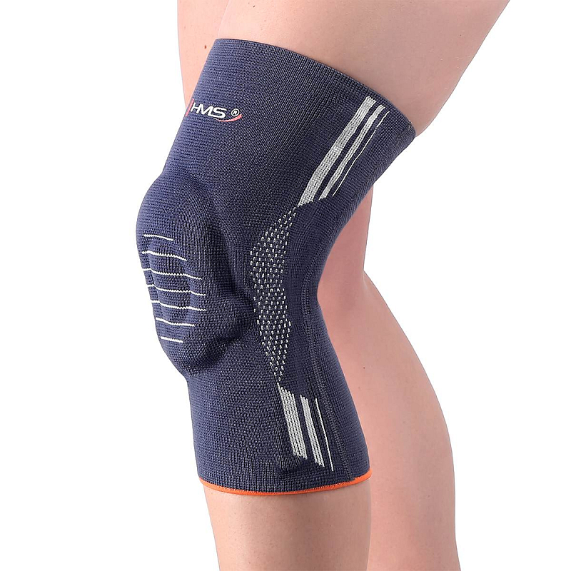 HMS KO1125 je bandáž na koleno s integorvaným silikonovým kroužkem pro stabilizaci čéšky bez omezení hybnosti kolene.