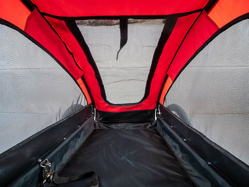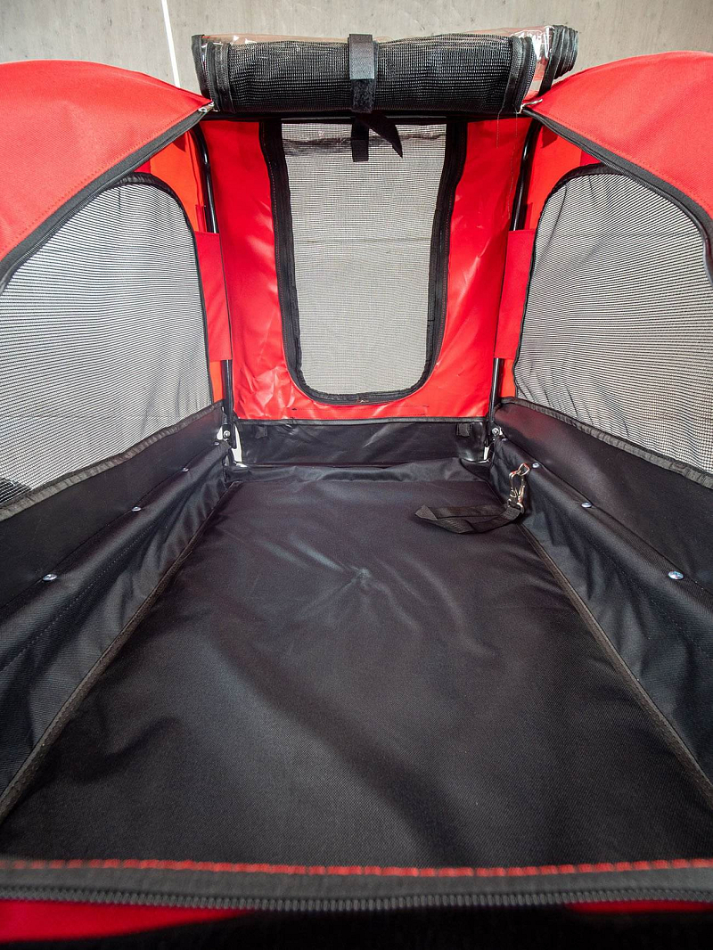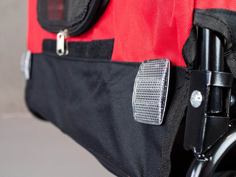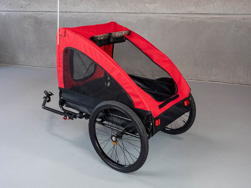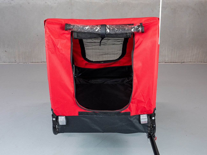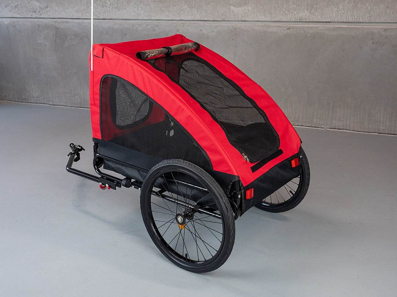 Vozík je vybavený dvěma stabilními 20″ koly. Pevná a lehké konstrukce dělá z vozíku atraktivní prostředek umožňující brát s sebou na výlety i domácího mazlíčka. Doporučený hmotnostní limit je 40 kg. Vnější rozměry vozíku jsou: délka – 79,5 cm (+ cca 70 cm tažná oj) x šířka – 60,5 cm x výška – 68 cm. , hmotnost je 15 kg. Vniřní prostor má rozměry 74,7 x 52,7 x 60 cm. Vozík je vyrobený v barvě červenočerné .