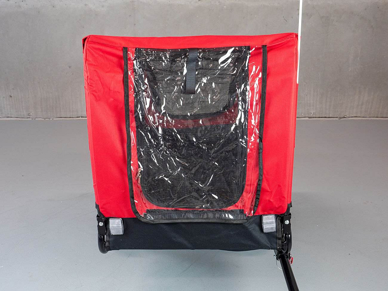 Základem je dvoukolový vozík s tažnou ojí, která umožňuje snadné uchycení za zadní kolo. Jako pojistka proti uvolnění vozíku za jízdy je upínací popruh s karabinou, kterou se vozík upne na rám jízdního kola. Vozík je vyrobený z pevného materiálu  (PES 600D oxford) a na třech stranách – čelní + 2 boční a ve střeše vozíku je ochranná síťovina proti hmyzu. Střecha a čelní stěna mají dále PVC rolovací folii  na překrytí síťoviny při dešti nebo při jízdě za mokra. Přístup do vozíku je zepředu i ze zadu s otevíráním na zipy, což zajišťuje pohodlné naůložení zvířete. Vozík je dále vybavený reflexními pruhy po straných, odrazkami na přední i zadní části.
