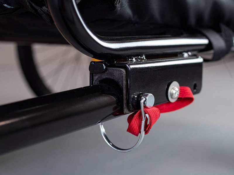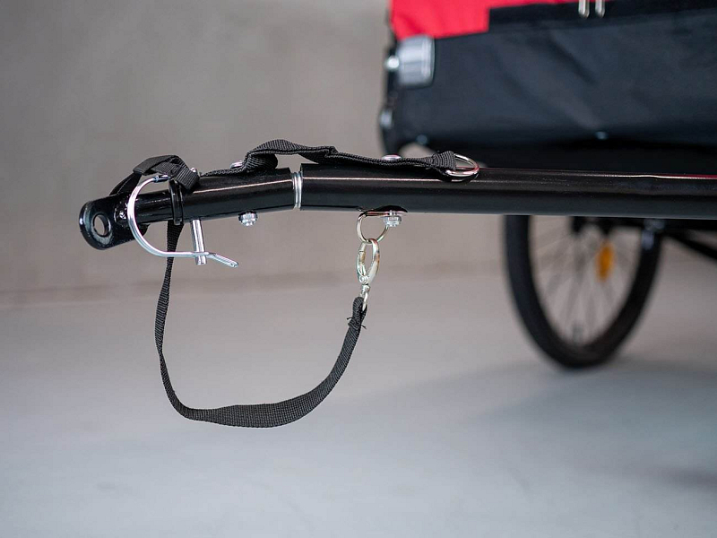 • snadné připevnění k zadní ose jizdního kola, zajištění upínacím popruhem s karabinou proti odpojení vozíku za jízdy