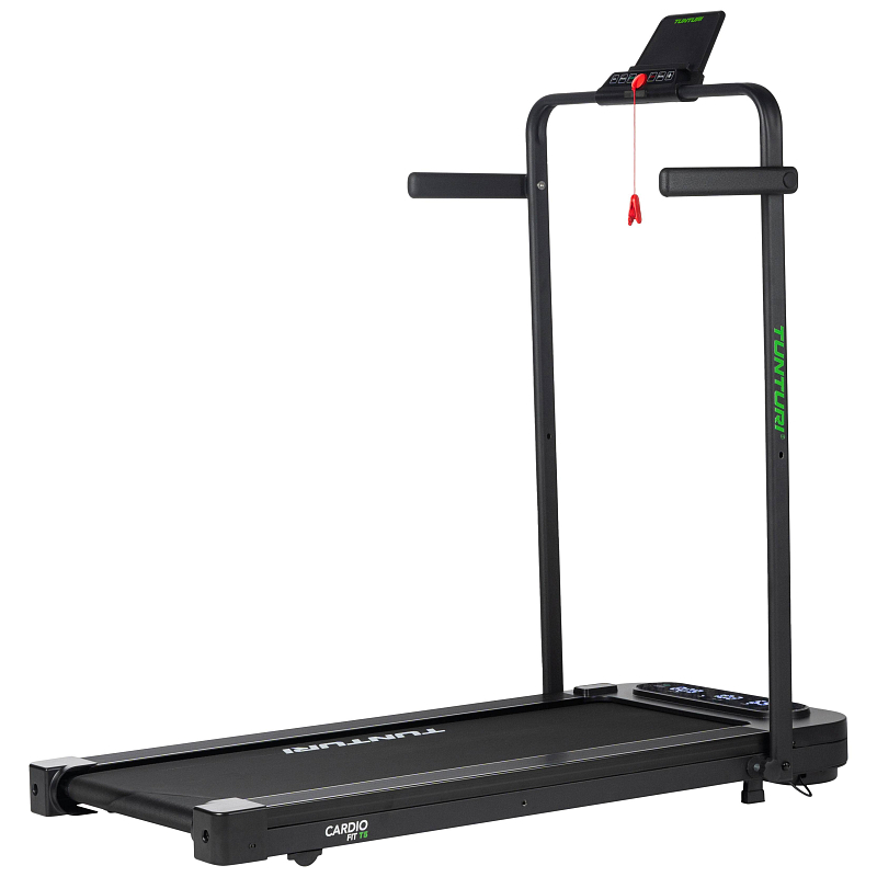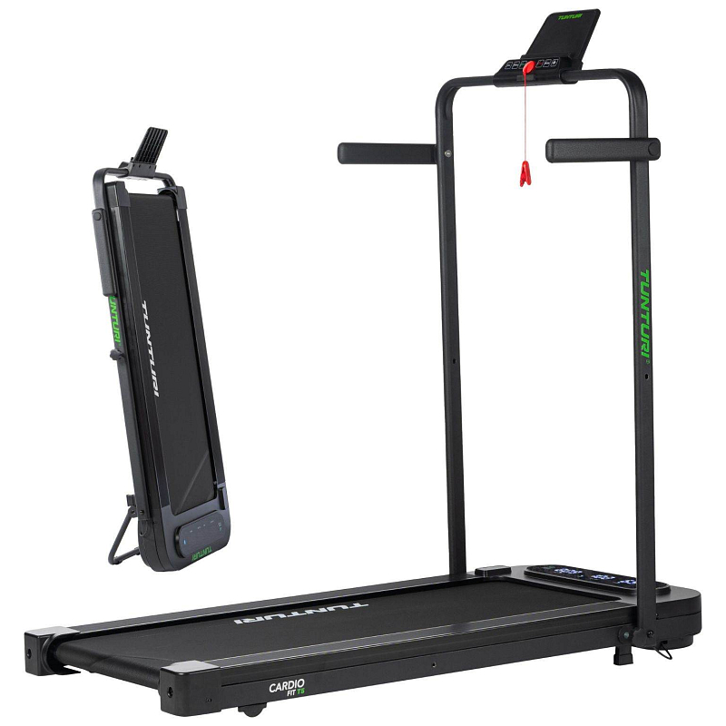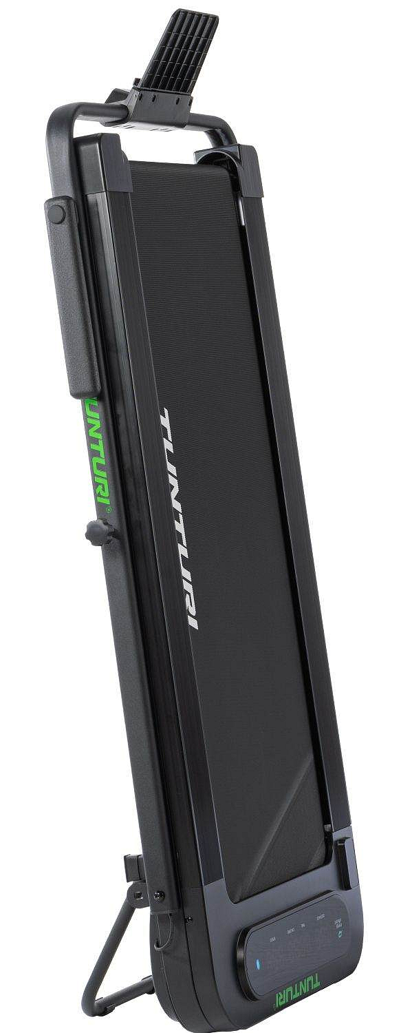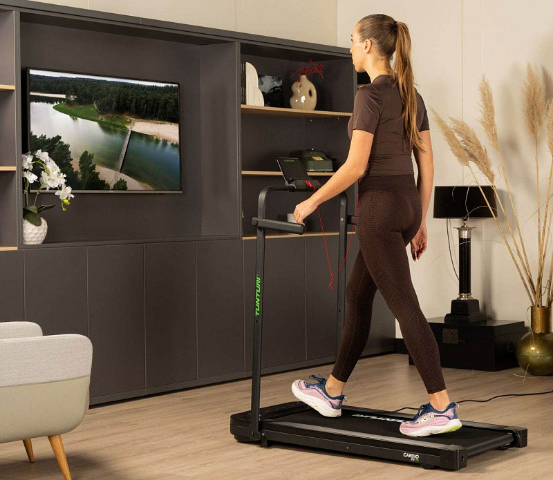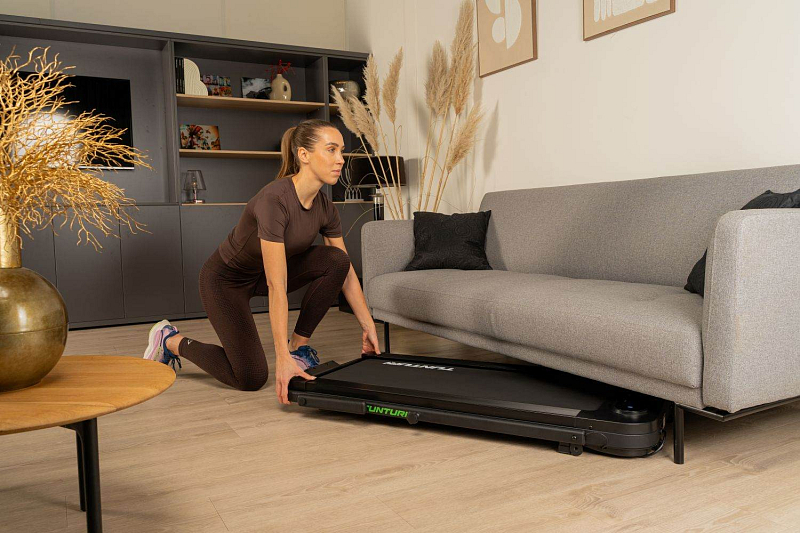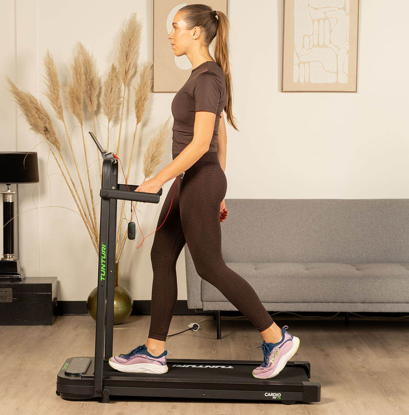 TUNTURI Cardio Fit T5 je ideální volbou pro každého, kdo si chce udržet aktivní životní styl i na malém prostoru. Díky velmi nízkému profilu a možnosti úplného složení ho snadno uložíte pod postel, za skříň nebo pod gauč. Pás nabízí rychlost až 8 km/h, je vybaven komfortním odpružením a tichým motorem, takže si můžete zacvičit kdykoliv, aniž byste rušili okolí. Běžecká plocha o rozměru 100 × 40 cm poskytuje dostatek prostoru pro pohodlnou chůzi nebo pomalý běh.