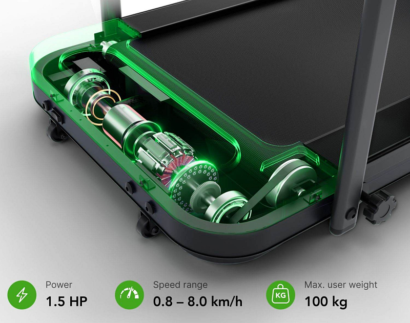 • rozsah rychlosti 0,8–8 km/h pro chůzi i lehký běh