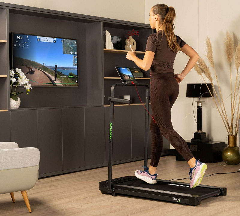 TUNTURI Cardio Fit T5 podporuje připojení k oblíbeným tréninkovým aplikacím – Tunturi Routes, Kinomap, MyHomeFIT a Zwift. Díky nim se běžná chůze nebo běh promění v interaktivní zážitek. Můžete se vydat na virtuální procházku podél pláží, ulicemi světových metropolí nebo přes horské stezky. Aplikace Tunturi Routes je zdarma ke stažení a poskytuje přístup k 15 videotréninkům, které se přizpůsobují vaší rychlosti. Prémiová verze pak nabízí stovky tras po celém světě.