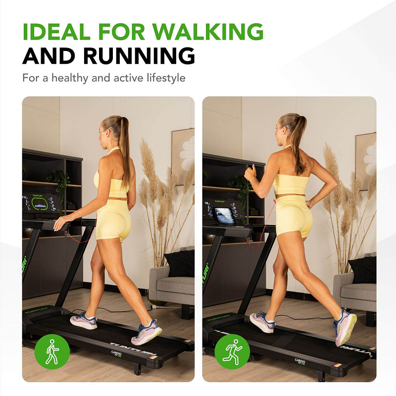 TUNTURI Cardio Fit T50 je výkonný běžecký pás pro domácí použití, který uspokojí jak začátečníky, tak pokročilé běžce. Nabízí prostornou běžeckou plochu o rozměrech 130 × 45 cm, rychlost až 16 km/h a automatické nastavení sklonu ve 15 úrovních, což vám umožní přizpůsobit trénink vaší kondici i cílům. Silný motor o výkonu 3,0 HP zajišťuje tichý a plynulý chod i při vyšších rychlostech, zatímco robustní konstrukce zaručuje stabilitu a dlouhou životnost stroje při každodenním používání.
