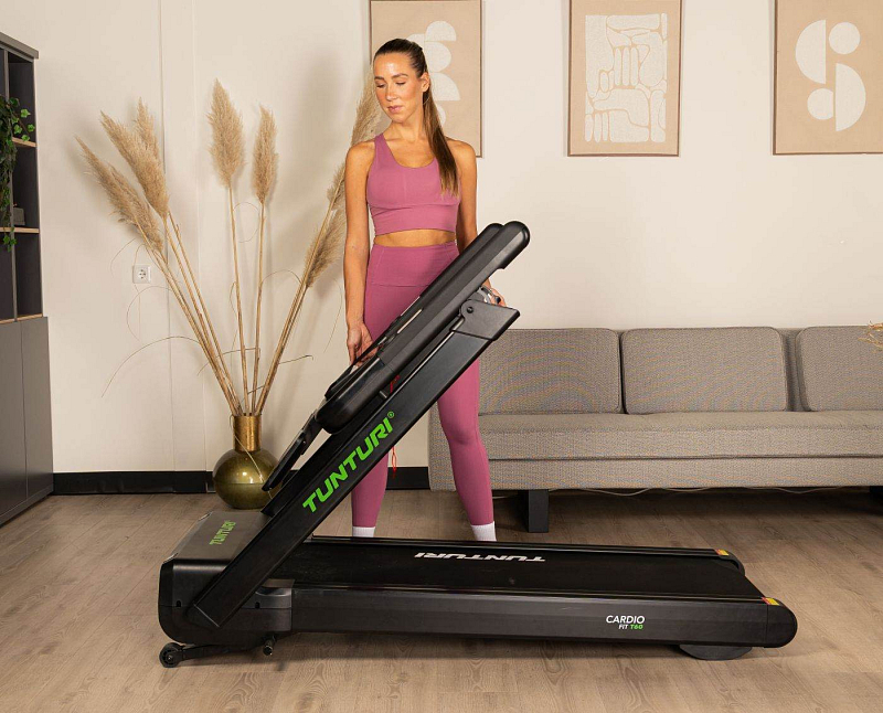 TUNTURI Cardio Fit T60 je výkonný běžecký pás určený pro náročné domácí uživatele, kteří hledají kombinaci pohodlí, variability a snadného skladování. Nabízí prostornou běžeckou plochu 140 × 50 cm, maximální rychlost až 18 km/h a automatický sklon ve 15 úrovních, díky čemuž si každý uživatel nastaví trénink přesně podle svých cílů.