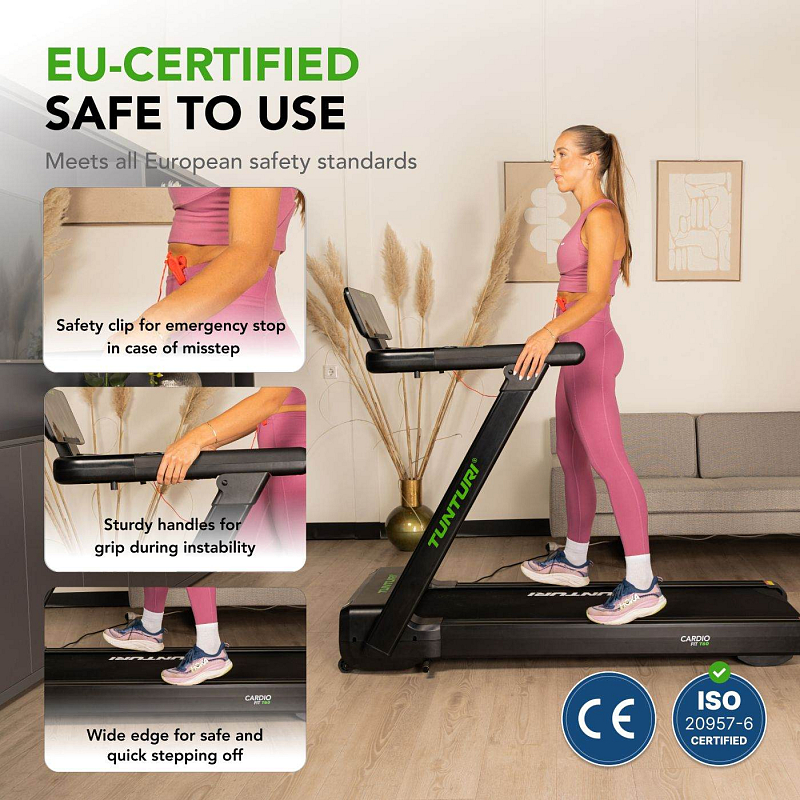 TUNTURI Cardio Fit T60 podporuje připojení k oblíbeným tréninkovým aplikacím – Tunturi Routes, Kinomap, MyHomeFIT a Zwift. Díky nim se běžná chůze nebo běh promění v interaktivní zážitek. Můžete se vydat na virtuální procházku podél pláží, ulicemi světových metropolí nebo přes horské stezky. Aplikace Tunturi Routes je zdarma ke stažení a poskytuje přístup k 15 videotréninkům, které se přizpůsobují vaší rychlosti. Prémiová verze pak nabízí stovky tras po celém světě.