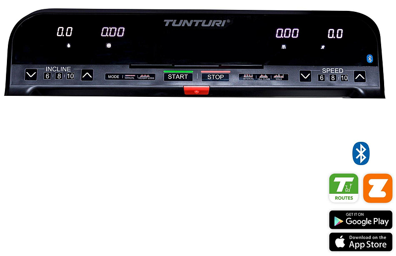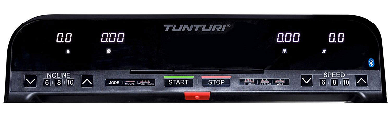TUNTURI FitRun 70i nabízí elektronicky nastavitelný sklon do 15% a rychlost v rozmezí od 0,8~20 km/h. Následně se vám všechny měřené hodnoty vyobrazí na přehledém LED displeji, který nabízí mimo to i 14 tréninkových programů + možnost přopojení přes bluetooth tablet a využívání tréninkové aplikace FitShow.