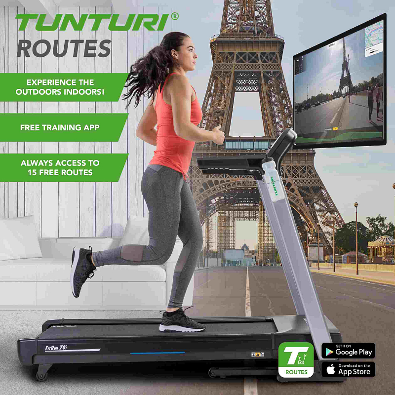 Běžecký trenažér TUNTURI FitRun 70i nabízí zákazníkům kombinaci kvalitní mechaniky a ergonomie s nosností do 125 kg. Stabilní a masivní konstrukce spolu s kvalitními komponenty a trvalým výkonem motoru 2 HP (1,5 kw) prodlužuje životnost stroje i při využití těžšími osobami a předurčuje model i pro pravidelný sportovnější trénink.