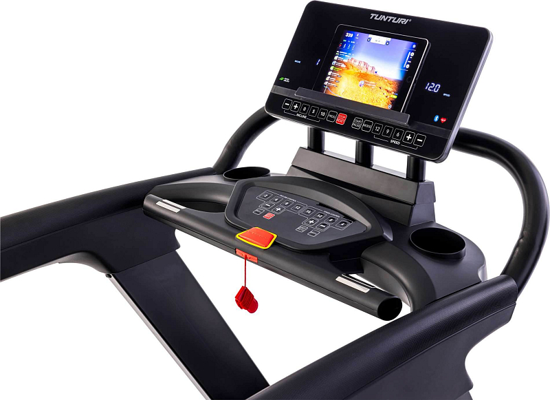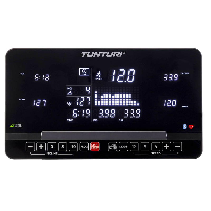 10" LCD s držákem na tablet poskytuje jasný přehled o všech důležitých tréninkových parametrech, jako je čas, rychlost a tepová frekvence. Integrované snímače tepové frekvence v rukojetích zajišťují přesné měření a umožňují personalizovaný trénink podle tepové frekvence. Přídavný ovládací panel nad rukojeťmi navíc poskytuje pohodlnou možnost nastavení rychlosti a sklonu.