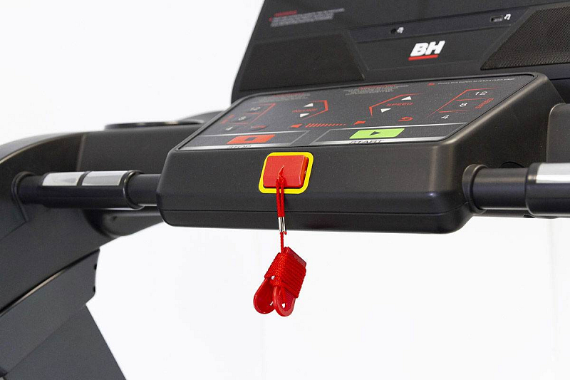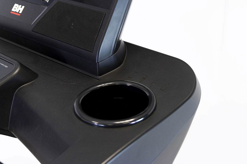 BH Fitness RS900 je vybaven stabilními madly, s integrovanými dlaňovými senzory pro měření tepové frekvence, v madlech jsou zabudovány i dotykové ovladače rychlosti a sklonu. ,