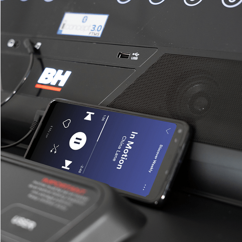 Pás disponuje držákem na tablet/smartphone a také technologií i.Concept 3.0, díky které můžete pás spojit s tréninkovými aplikacemi jako Kinomap a Zwift.