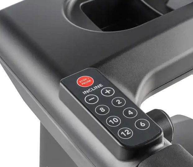 - DECLINE MODE - Režim s až 10% nastavitelným sklonem do 15 úrovní, maximální rychlost až 2,5 km/h. Tento režim je ideální pro spalování kalorií a posílení svalů na nohou.
