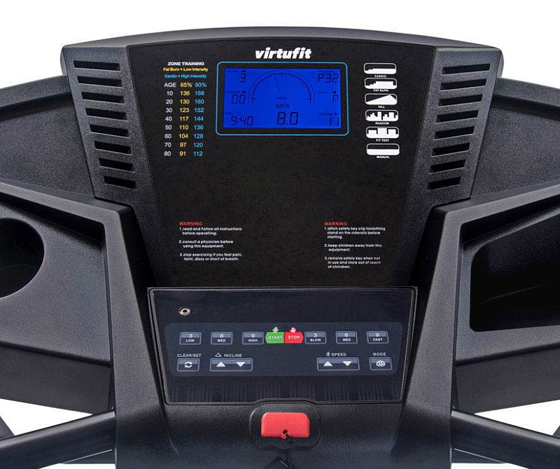 Měřené hodnoty:Spálené kalorie, Tep srdce, Vzdálenost, Signalizace překročení tepu, Čas běhu, Rychlost běhu, Sklon pásu