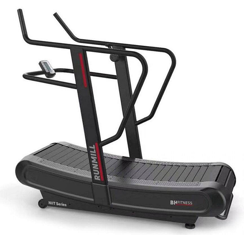 Běžecký pás BH Fitness RUNMILL je prohnutý lamelový pás, který je poháněn samotným běžcem. Rychlost si regulujete změnou místa běhu, když se posouváte vpřed, pás zrychluje a když se posouváte vzad, pás zpomaluje. Pro doladění je zde brzda se čtyřmi úrovněmi odporu.