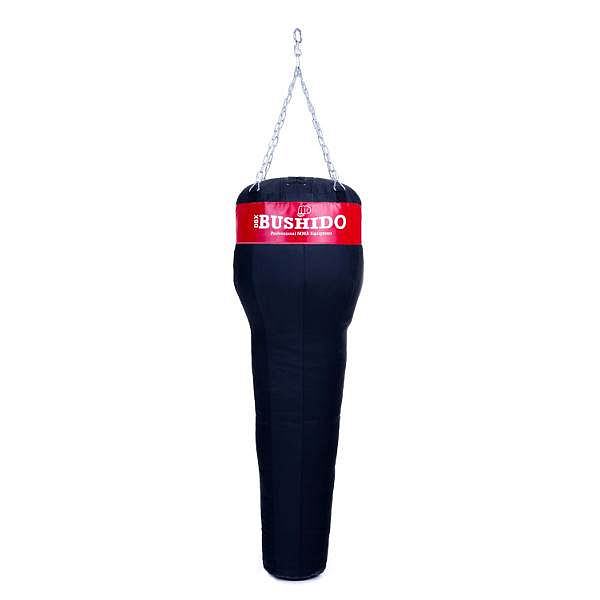 Profesionální boxovací hákový pytel DBX BUSHIDO 140 x 45 až 30 cm. Délka řetezů při zavěšení 45 cm (díky karabině lze nastavit i kratší délku).