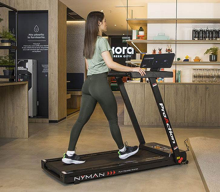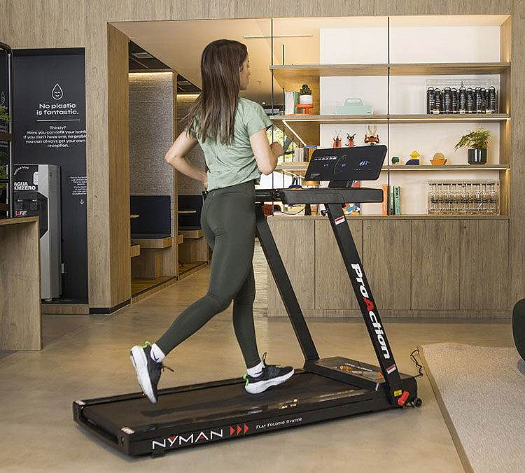 Skládací běžecký pás BH Fitness NYMAN je vhodný pro lidi, kteří chtějí chodit, nebo běhat na stabilním a bezpečném stroji. S prostornou běžeckou plochou 45 x 122 cm je tento běžecký pás ideální pro začínající běžce i pro rychlejší běh. Díky svislému nebo vodorovnému skládacímu a úložnému systému je ideální pro uživatele, kteří mají doma problémy s prostorem. Stroj snadno složíte a uchováte na minimálním prostoru. Integrovaná kola stroje umožňují snadnou přepravu a skladování.