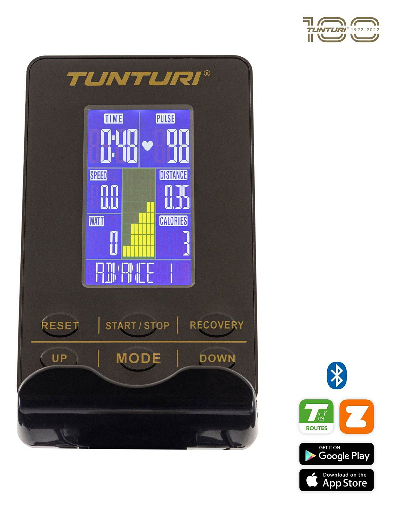 • Aplikace: (Android/iOS)Tunturi Routes, Kinomap, Zwift controlled, iConsole+ Training