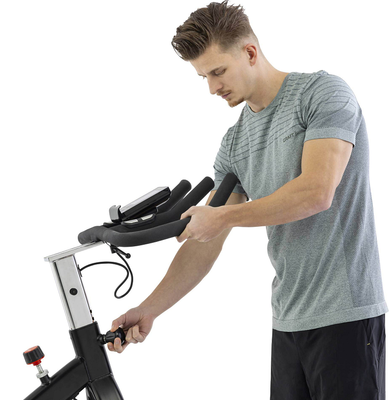 Díky setrvačníku o hmotnosti 17 kg (37,5 lbs) vždy vyvinete dostatečný výkon. Přepravní kolečka vám umožní cvičit, kde chcete, a cyklotrenažér můžete bez námahy přemisťovat.
