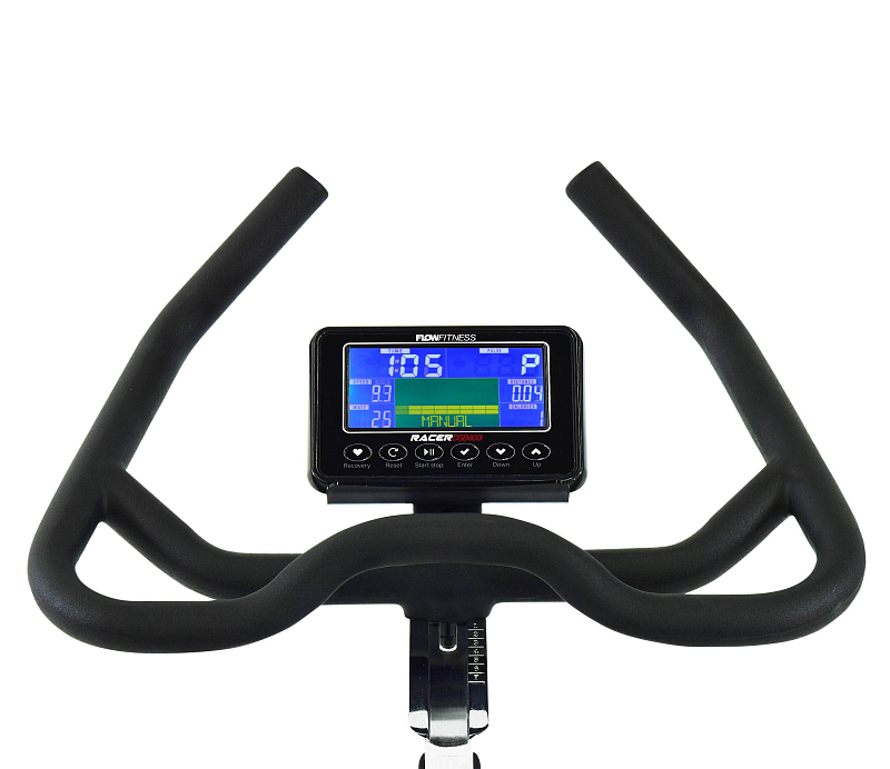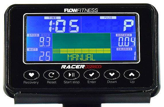 Cyklotrenažér Flow Fitness DSB600i disponuje přehledným počítačem s držákem na tablet/smartphone, bluetooth přijímačem a bohatou programovou nabídkou. Jeho součástí jsou i transportní kolečka, vyrovnávače nerovnosti a držák na lahev.