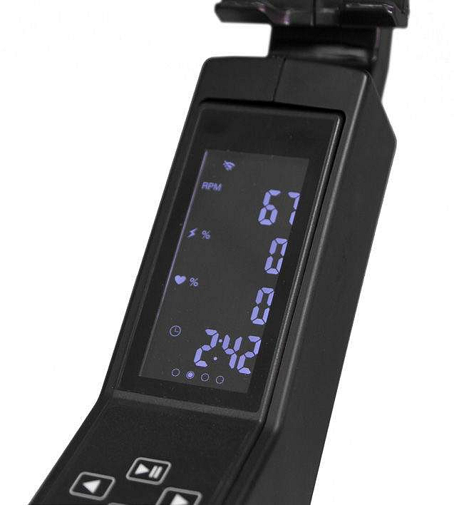 | Měřené hodnoty: | Spálené kalorie, Tep srdce, Čas šlapání, Rychlost, Ujetá vzdálenost, Frekvence otáček, Výkon (W), Zobrazení zátěže na displeji |