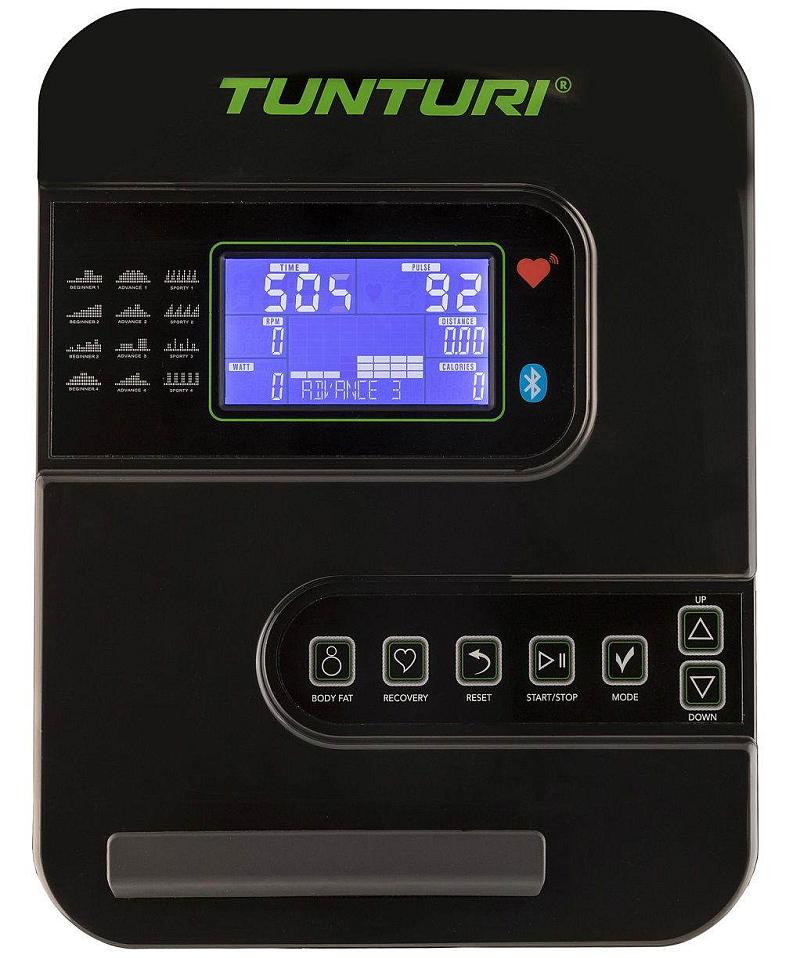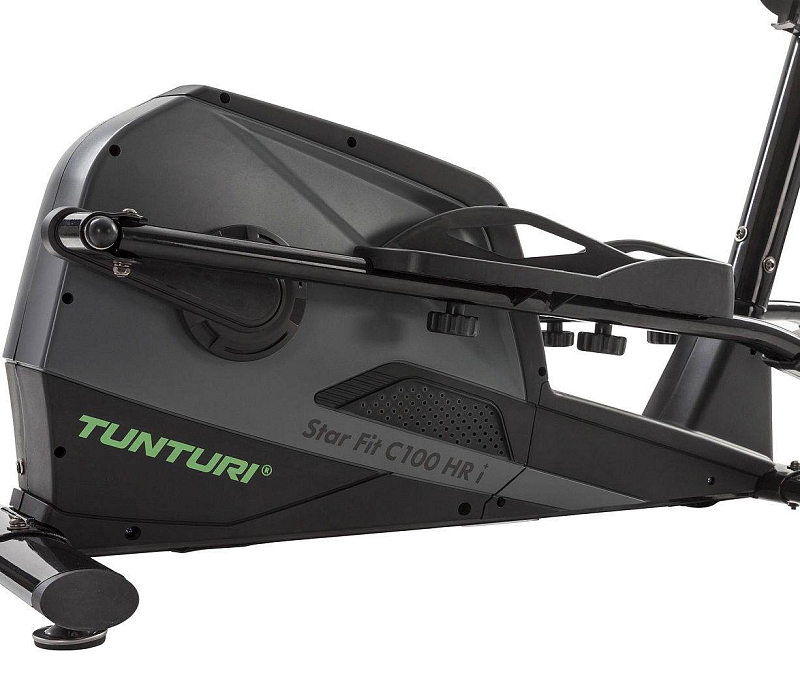 Součástí trenažéru Tunturi StarFit C100 HR je počítač s bohatou programovou nabídkou, držákem na tablet/smartphone a bluetooth zařízením. Dále disponuje transportními kolečky pro snadnou manipulaci a vyrovnávači nerovnosti pro maximální stabilitu při tréninku.