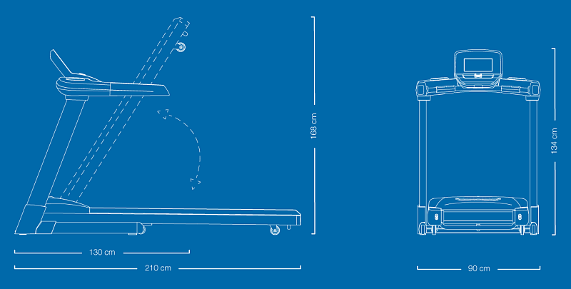 | Měřené hodnoty: | Spálené kalorie, Tep srdce, Vzdálenost, Signalizace překročení tepu, Čas běhu, Rychlost běhu, Sklon pásu |