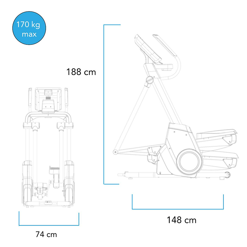 Trenažér je vybaven transportními kolečky, které zajistí snadnou manipulaci se strojem kamkoliv po místnosti. Přepravní kolečka jsou umístěna v zadní části stroje a madlo pro uchopení v přední části stroje. Stabilitu i při maximálním zatížení poskytují vyrovnávače nerovností podlahy. Dále má stroj praktický držák na lahev s vodou.