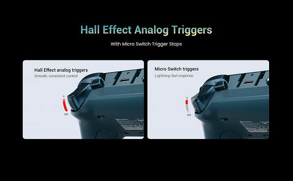 Plynulé a přesné analogové ovládání s možností přepnout na klikavé dorazy dle preference. Aktivuj režim Hair Trigger držením M + LT/RT. Pro maximální kontrolu i rychlost.