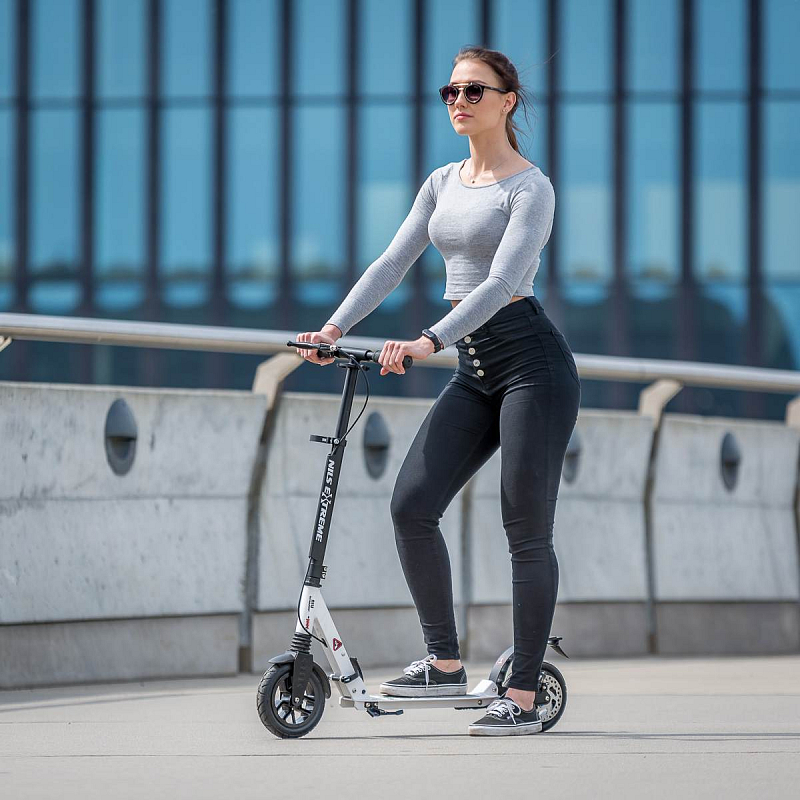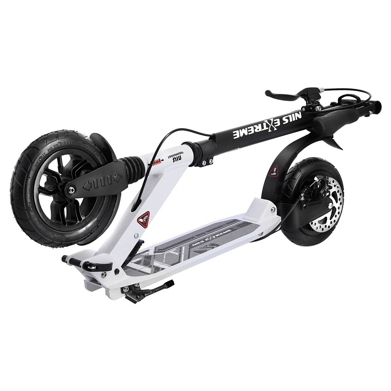 Koloběžka NILS Extreme HM208T je vhodná pro děti i dospělé. Charakteristikou modelu HM208T jsou tlumiče na předním i zadním kole a mechanická, kotoučová brzda.