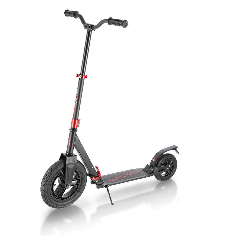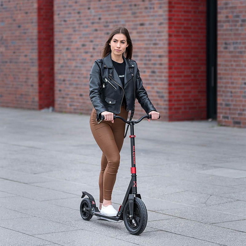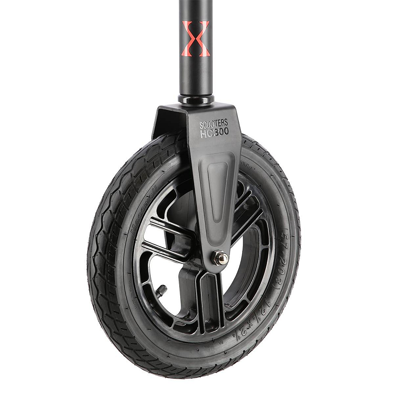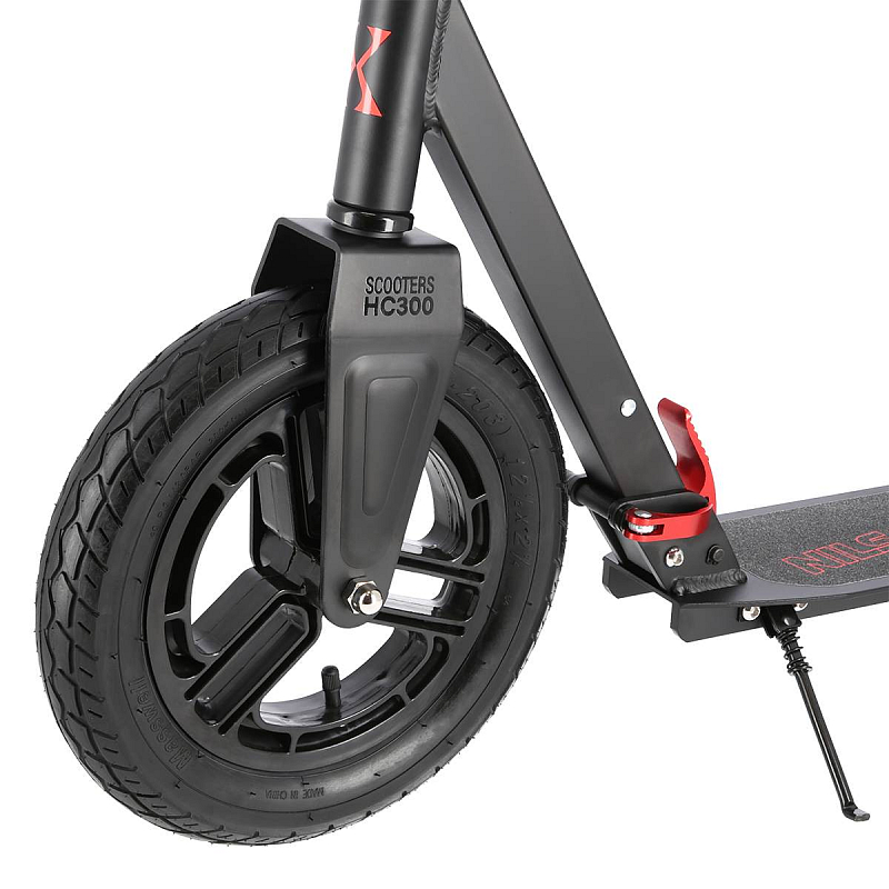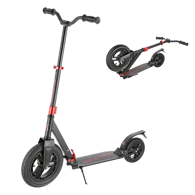 Koloběžka NILS Extreme HC300 je kombinací klasické a skládací koloběžky, která si poradí s klasickými nástrahami města, jako jsou například prohlubně a patníky. Pumpovaná kola jsou ideální pro dlážděné chodníky, pneumatika se přizpůsobí podkladu a i jízda po takzvaných "kočičích hlavách" bude příjemná a tichá. 20-ti centimetrové zadní kolo je osazeno vodorovným tlumičem, které tak má téměř stejný účinek tlumení, jako 30-ti centimetrové přední kolo. Jako brzda slouží robustní, hliníkový blatník, který stačí pouze přišlápnout a koloběžka začne okamžitě zpomalovat. Koloběžka HC300 je vybavena skládacím mechanizmem, kdy po sklopení řídítek můžete s koloběžkou pohodlně cestovat městskou, hromadnou dopravou a nebo si můžete koloběžku uložit do kufru Vašeho vozu. Řídítka jsou zakončena pohodlnými, gumovými gripy pro pevný a pohodlný úchop. Samotná řídítka lze mírně předsadit pro větší jistotu během jízdy. Skládací stojánek je pak už jen pomyslnou "třešničkou na dortu".