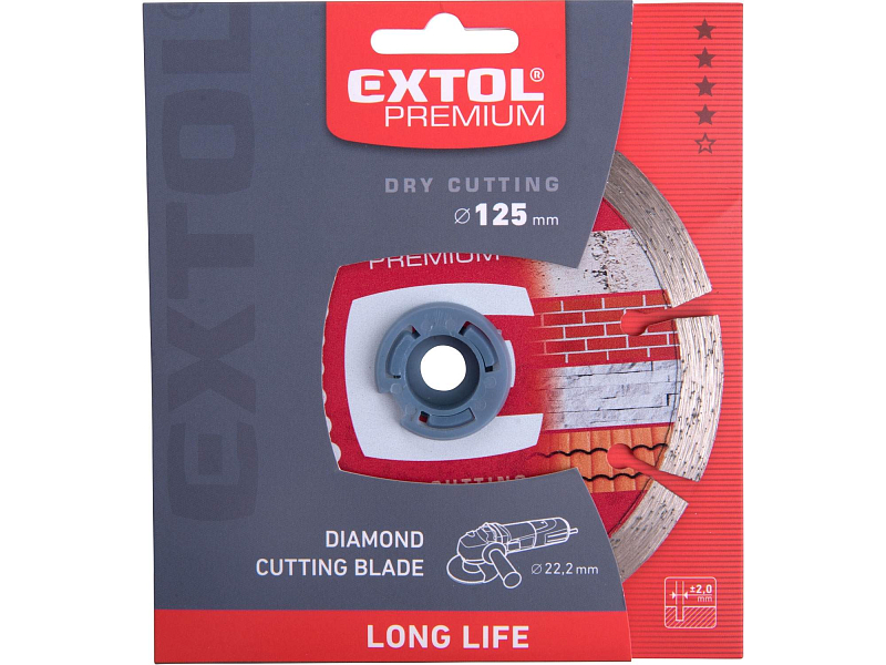 Řada diamantových řezných kotoučů LONG LIFE s prodlouženou životností pro profesionální a poloprofesionální použití. Díky složení diamantové směsi a výšce segmentu mají kotouče až o 50% větší řezný výkon než ostatní Extol Premium kotouče.