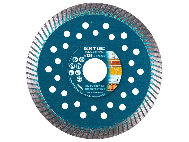 Úvodní strana > Doplňkový sortiment > ZRUŠENO! Nahrazeno výrobkem 8703062 kotouč diamantový řezný, turbo Fast Cut, suché i mokré řezání, O 125x22,2x2mm