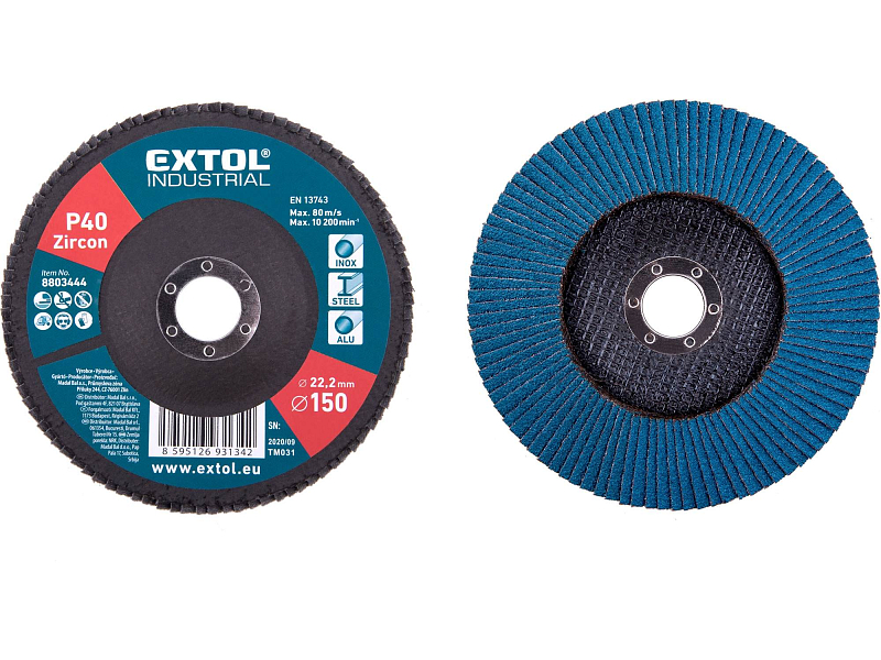 Lamelové kotouče Extol Industrial jsou vyrobeny z materiálů profesionální kvality a zirkonová řady je určena pro nejnáročnější operace při broušení zejména nerezových, žáruvzdorných či jiných speciálních ocelí, jejich svárů, úpravě hran atd.