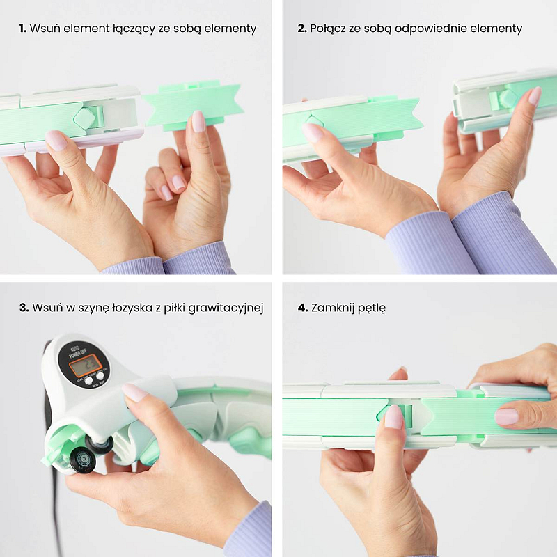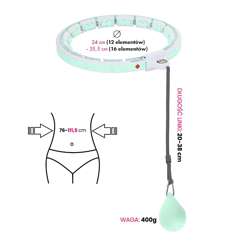 Délka obruče se nastaví podle obvodu pasu tak, aby byla dostatečně volná, ale zároveň aby nepadala přes boky. Po nastavení délky se obruč uzamkne pomocí spojovacího dílu, který je osazen páčkou pro ovládání zámku. Závaží se následně "vrhne" směrem, do kterého budeme kroutit boky a začneme trénink. Obruč HHW06 je z vnitřní strany opatřena masážními výstupky s pružinami, které tlumí vibrace od pohybující se kotvy a zároveň příjemně masírují oblast pasu. Intensitu tréninku ovlivňuje délka provázku a rychlost, jakou kroutíme boky.