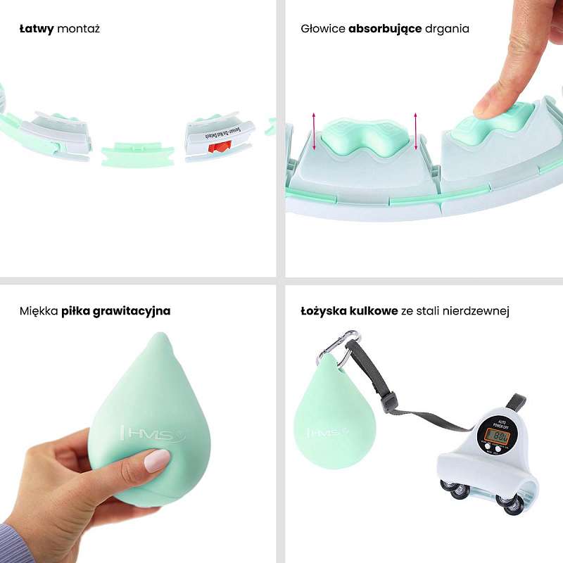HMS HHW06 je hula hop obruč s nastavitelnou délkou, masážními výstupky a rotujícím závažím.