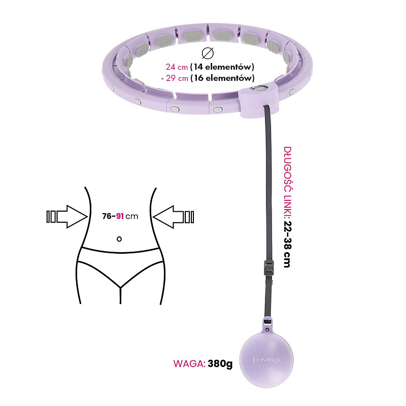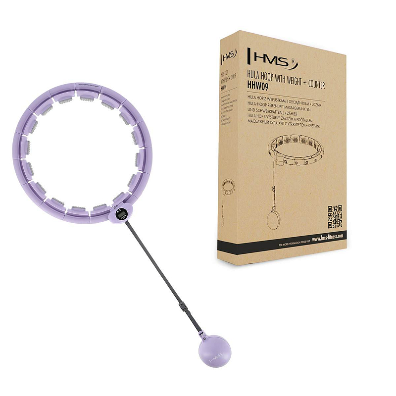 HMS HHW09 je hula hop obruč s nastavitelnou délkou, masážními výstupky a rotujícím závažím.
