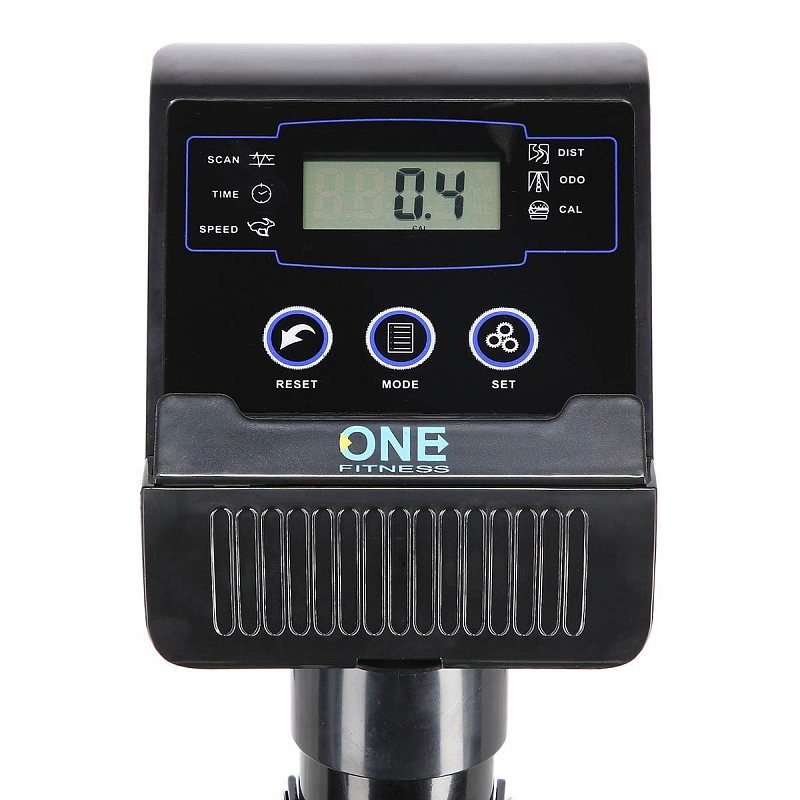 Mechanický rotoped ONE Fitness RW3011, jak už název napovídá, má mechanický systém brždění bez zátěžového kola. Přehledný počítač zobrazuje veškeré údaje potřebné pro přehledný trénink - čas tréninku, rychlost, vzdálenost, celková vzdálenost a spálené kalorie. Konzole je vybavena držákem mobilního zařízení, do kterého umístíte tablet nebo telefon a během tréninku můžete sledovat například oblíbený seriál.