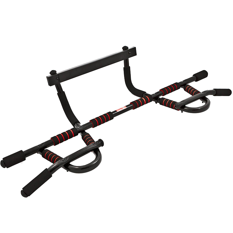 Název mluví za vše: s tímto multifunkčním dveřním trenažérem Tunturi máte nekonečné možnosti. Upevněte jej mezi rám dveří a voilà, máte praktickou posilovací tyč pro cvičení s bradly a vztyčenými nohami.