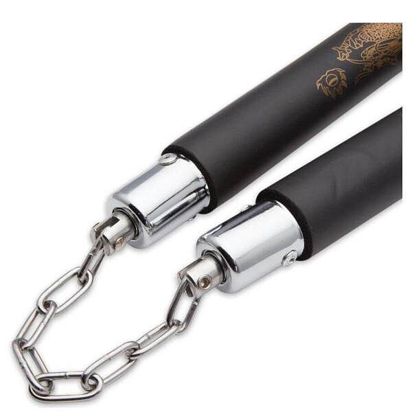 Nunchaku, neboli nunčaky DBX BUSHIDO ARW-5049 jsou díky pěnovým rukojetím vhodné k tréninku bojových umění. Vysoká vrstva pěny snižuje riziko zranění. Ocelové válečky jsou opatřeny ložisky a spojeny svařovaným řetězem.