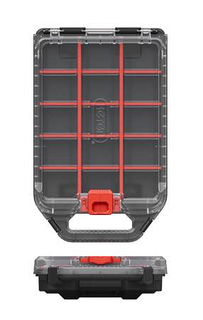 Skládá se ze 15 sekcí, do kterých umístíte drobné součástky, doplňky a jiné řemeslné potřeby. Přihrádky si přizpůsobíte podle vlastních potřeb a velikosti a množství náčiní. Velké madlo vám navíc zjednoduší přenášení organizéru.
