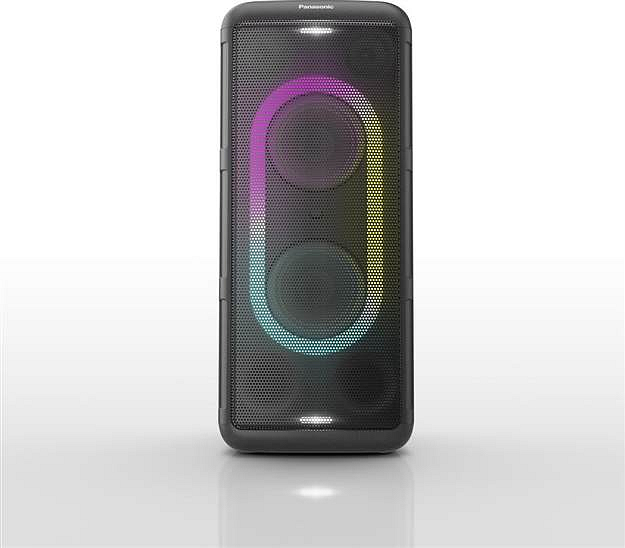 Párty reproduktor, RMS výkon 1000W, hloubkový reproduktor 16 cm x 2, výškový reproduktor 6,3 cm x 2, Bluetooth, USB vstup, použití mikrofonu nebo kytary, 9 vzorů vícebarevného osvětlení, 3 vzory jednobarevného osvětlení, 2 blikající světla, karaoke