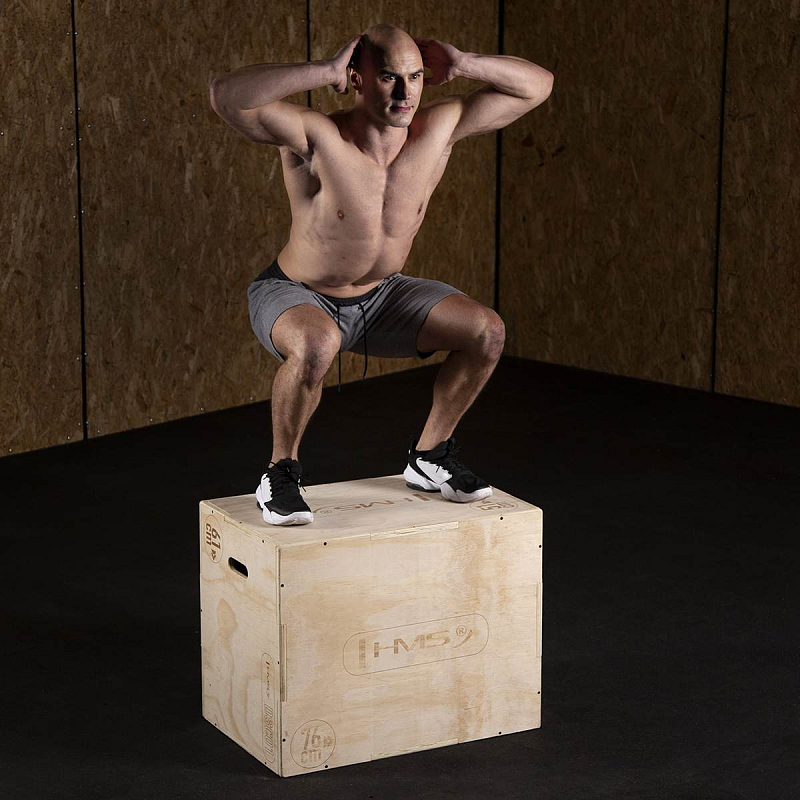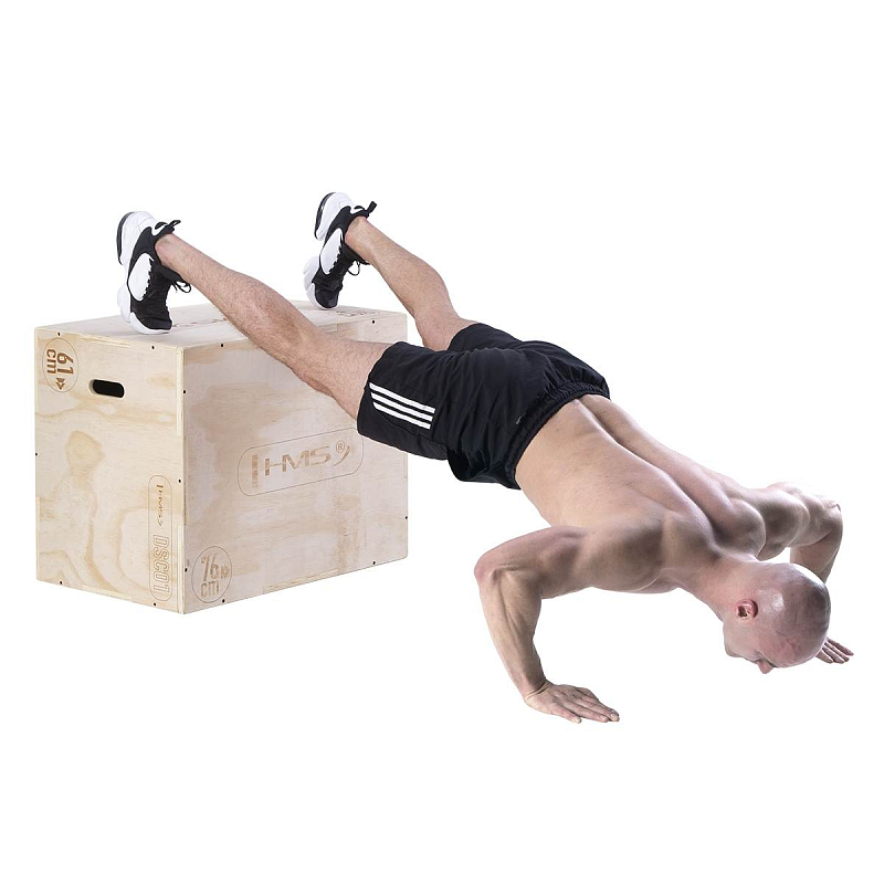 Plyometrický box HMS DSC01 je bedna určena pro kondiční trénink. Box je nedílnou součástí každého fitness centra, pomůckou profesionálních sportovců nebo i atletů. Vyroben je z 18 mm překližky a má klasické rozměry 76,2 x 60,96 x 50,8 cm (30 x 24 x 20 palců).