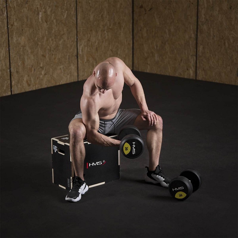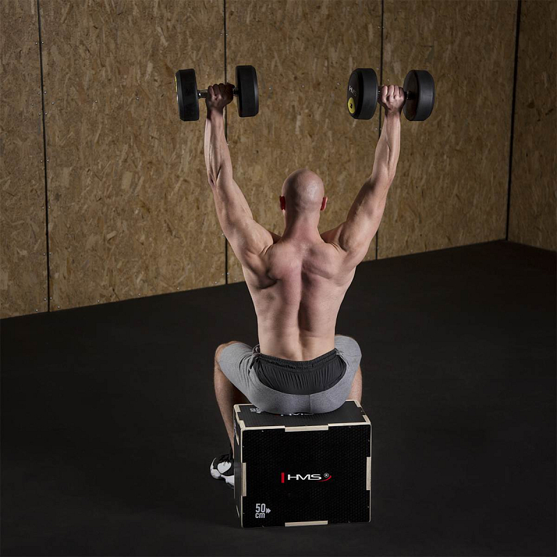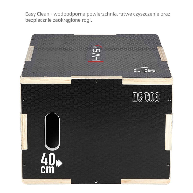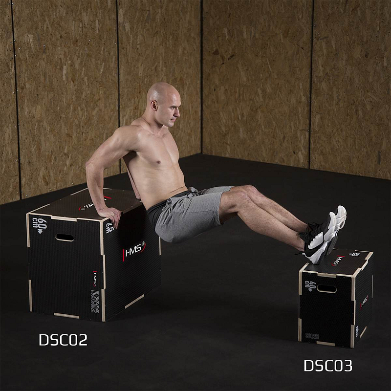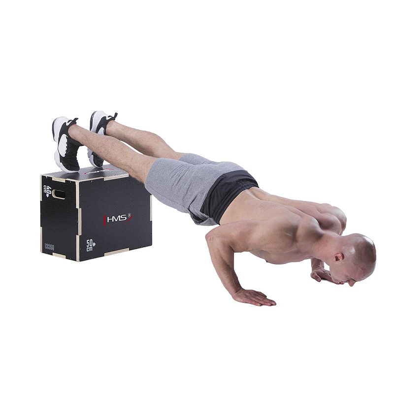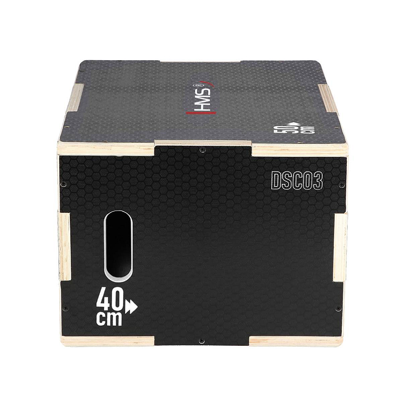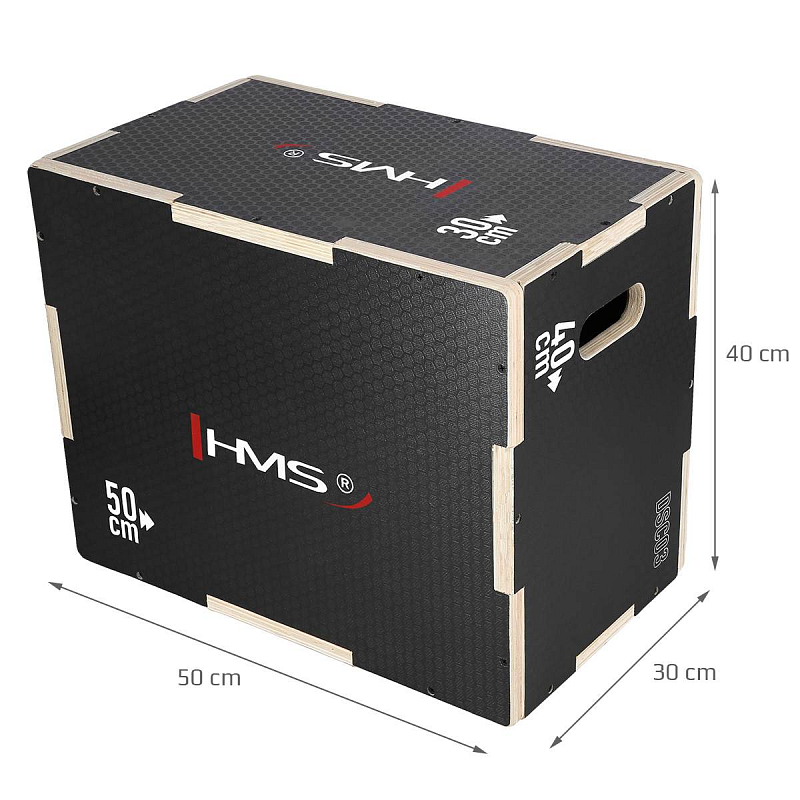 Plyometrický box HMS DSC03 je bedna určena pro kondiční trénink. Box je nedílnou součástí každého fitnesscentra, pomůckou profesionálních sportovců nebo i atletů. Vyroben je z 18 mm překližky a má rozměry 50 x 40 x 30 cm.