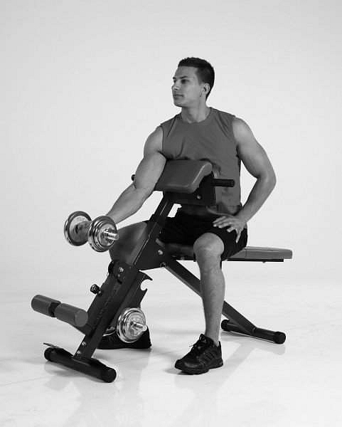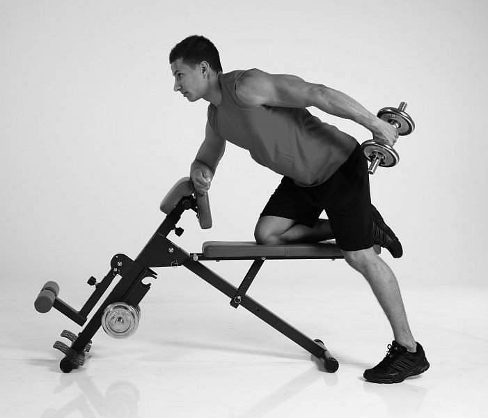 Víceúčelová lavice k posílení břišních, zádových, prsních svalů a paží. Lze cvičit s vlastní vahou, nebo použít jednoruční činky, které ale nejsou součástí. Součástí lavice je i bicepsový pult. Pomáhá jako prevence před bolestmi zad a spinálními zraněními.