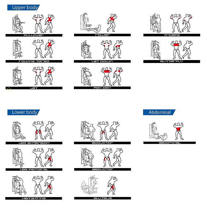 | Vybavenost stanovišti: | Tlaky na prsa v sedě, Horní kladka, Spodní kladka, Předkopávání, Zakopávání, Peck-deck, Leg-press, Bradla s přednožováním, Tricepsové kliky - dipy |