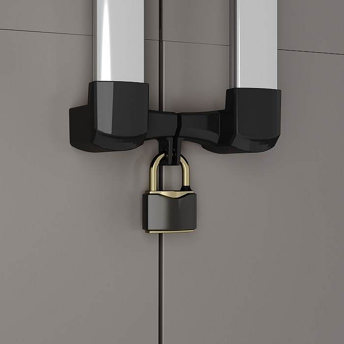 Pevné panty, možnost uzamčení a odolnost skříně jsou výhodou.